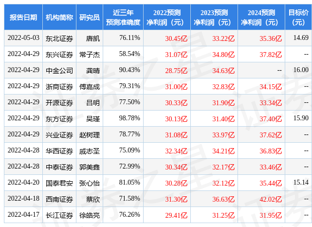 证券之星数据中心根据近三年发布的研报数据计算,东方证券(600958)吴瑾研究员团队对该股研究较为深入,近三年预测准确度均值高达98.78%,其预测2022年度归属净利润为盈利30.13亿,根据现价换算的预测PE为11.05。