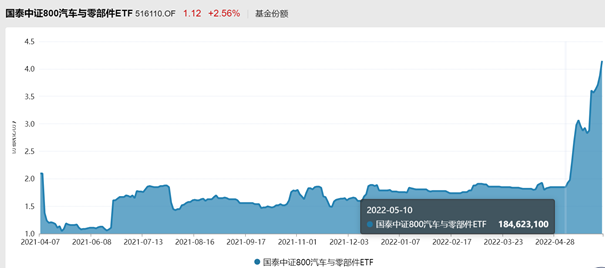 随着新能源赛道的复苏,也有不少相关的ETF规模创下新高。比如前述提及国泰中证800汽车与零部件ETF,早在5月初已有市场资金提前布局。短短一个月,该基金份额接连突破2亿份、3亿份关口,截至月底,基金份额达到3.88亿份,规模也逼近4亿元。