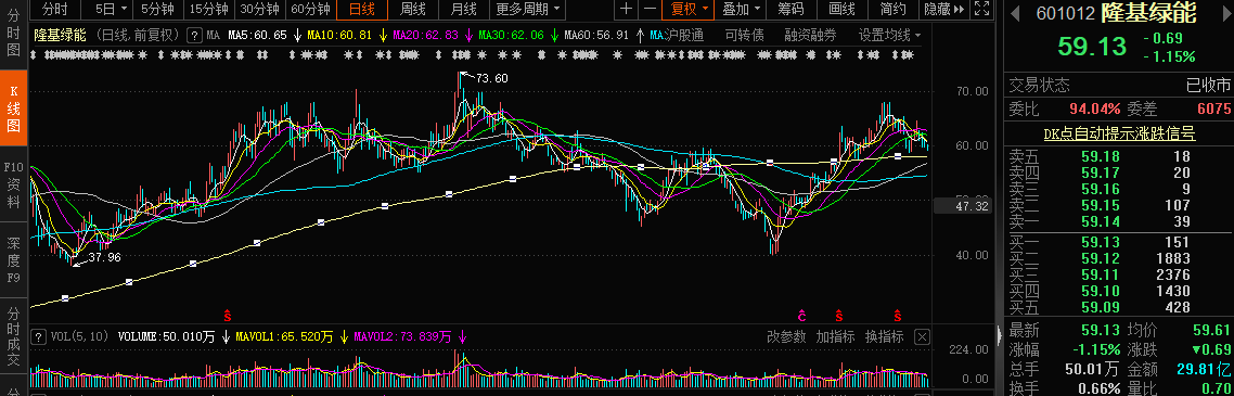 股价表现方面,隆基绿能今年股价波动幅度较大,总体呈现出V型走势,年内最低价下探至39.96元,最新报收于59.13元,今年股价整体下跌3.68%,截至目前,总市值为4483亿元。