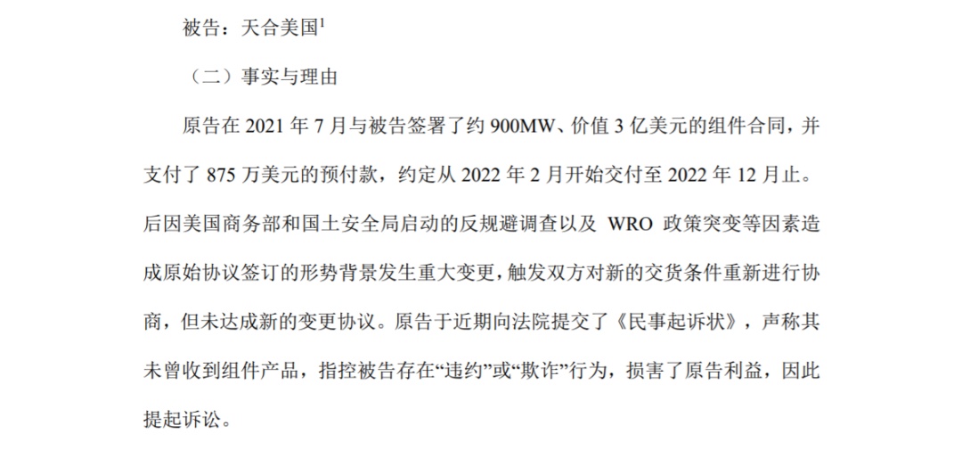 因组件交付问题,市值1700多亿的天合光能被告上了法庭。