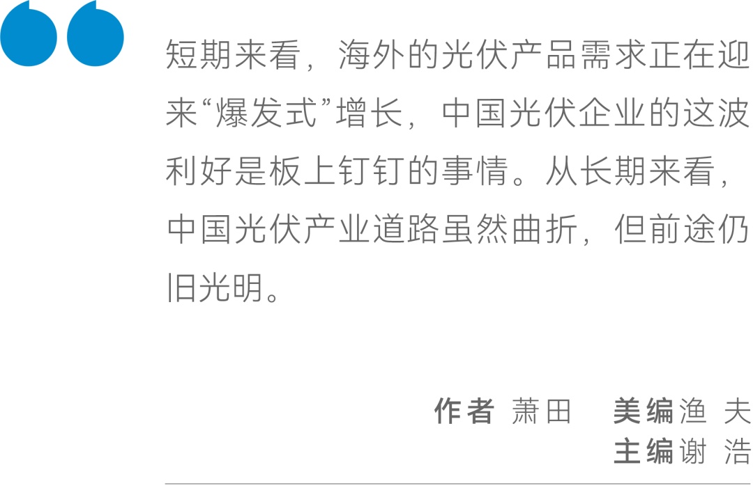 投资者们关心的是,从短期来看,海外的光伏产品需求正在迎来“爆发式”增长,中国光伏企业的这波利好是板上钉钉的事情。但从长期来看,诉讼之下的天合光能们又能否保持增长态势?