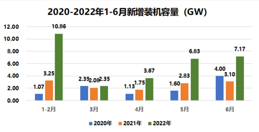 从1-6月份的数据上看,光伏累计新增装机30.88GW,同比增长137.4%。光伏行业协会预测,2022年我国光伏新增装机量预计为85-100GW,同比增长将达到60%-89%,较此前预测调高10GW。