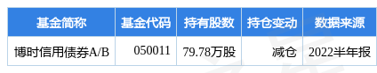 其中持有数量最多的基金为博时信用债券A/B,目前规模为62.7亿元,最新净值3.216(8月15日),较上一交易日下跌0.12%,近一年下跌4.31%。该基金现任基金经理为过钧。