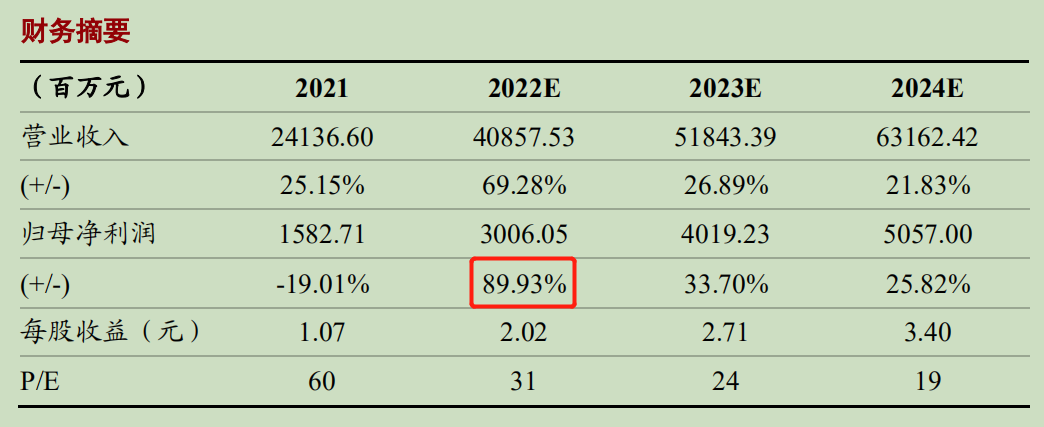 根据盈利预测与估值分析,浙商证券(601878)分析师陈明雨在5月7日发布的研报中指出,阳光电源逆变器销量稳定增长,储能系统打造第二成长曲线,预计2022年净利润同比增长89.93%。