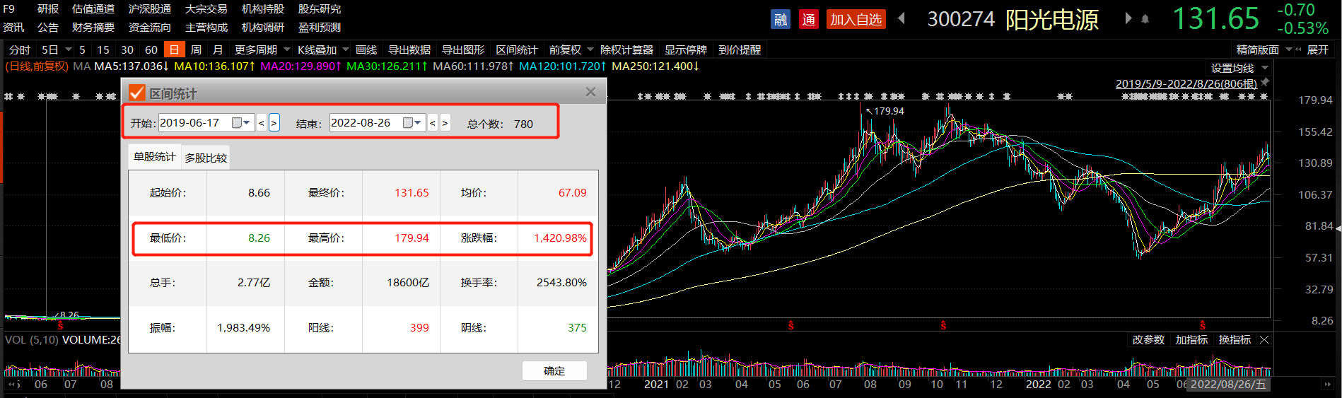 二级市场方面,阳光电源股价自2019年6月阶段低点至今累计最大涨幅达2078%,三年涨超20倍。