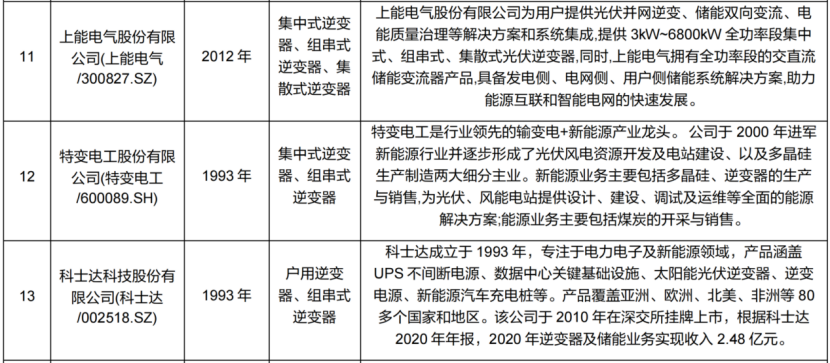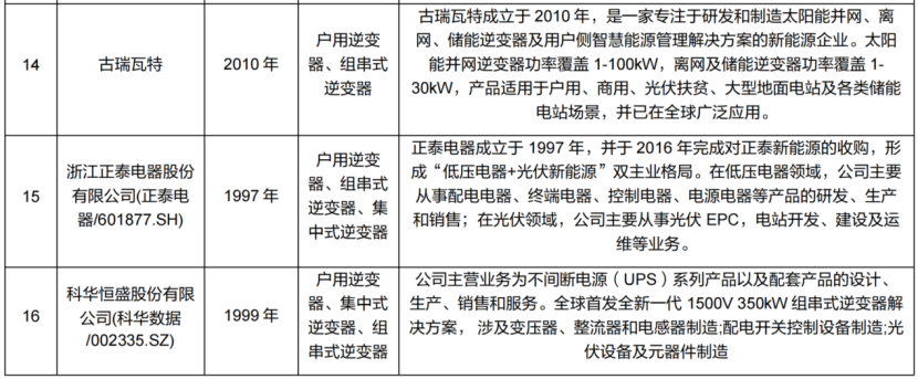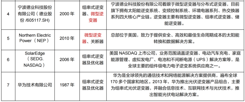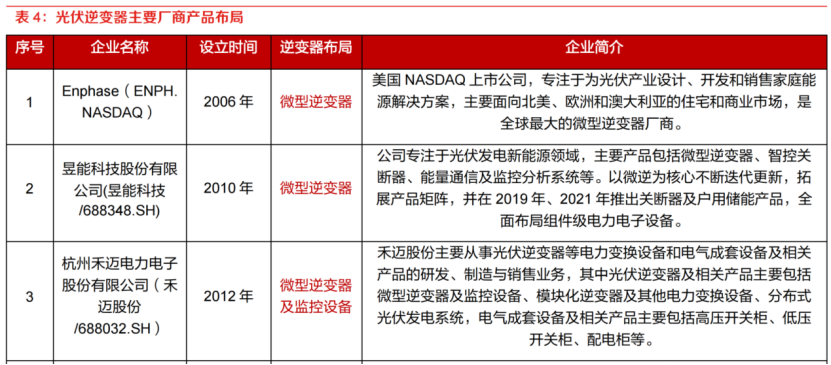 东北证券卢日鑫等人在8月8日发布的研报中表示,国内光伏逆变器主要厂商为昱能科技、禾迈股份、德业股份、锦浪科技(300763)、固德威、阳光电源(300274)、上能电气、特变电工(600089)、科士达(002518)、正泰电器(601877)、科华数据等。