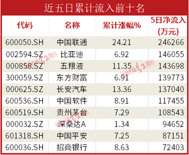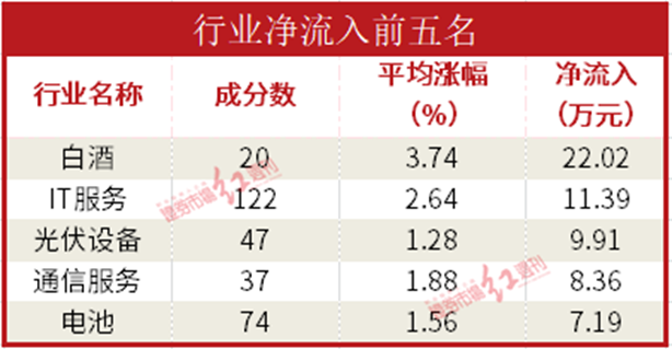 机构资金主要流入白酒、IT服务、光伏设备、通信服务等行业,其中流入白酒板块中2只龙头股五粮液(000858)与贵州茅台(600519)8.6亿元与3.8亿元。另外续昨日机构资金流入4.3亿元后,中国联通今日再获流入7.28亿元,使股价大涨7%。