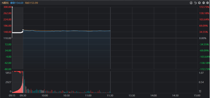 财联社(上海,编辑 梓隆)讯,今日(12月9日)早盘,新股市场再迎一只大肉签,截止午间收盘,N聚和(聚和材料)首日上市大涨40.63%,其此次上市发行价达110元/股,若以中一签500股计算,可盈利近2.2万元。